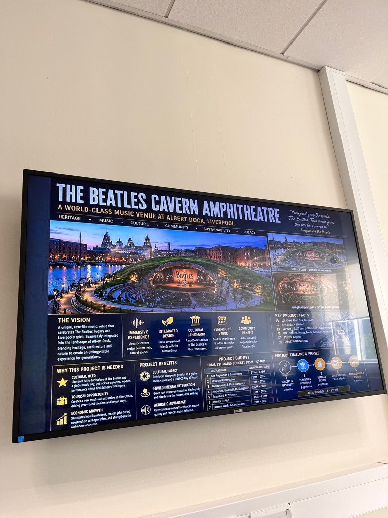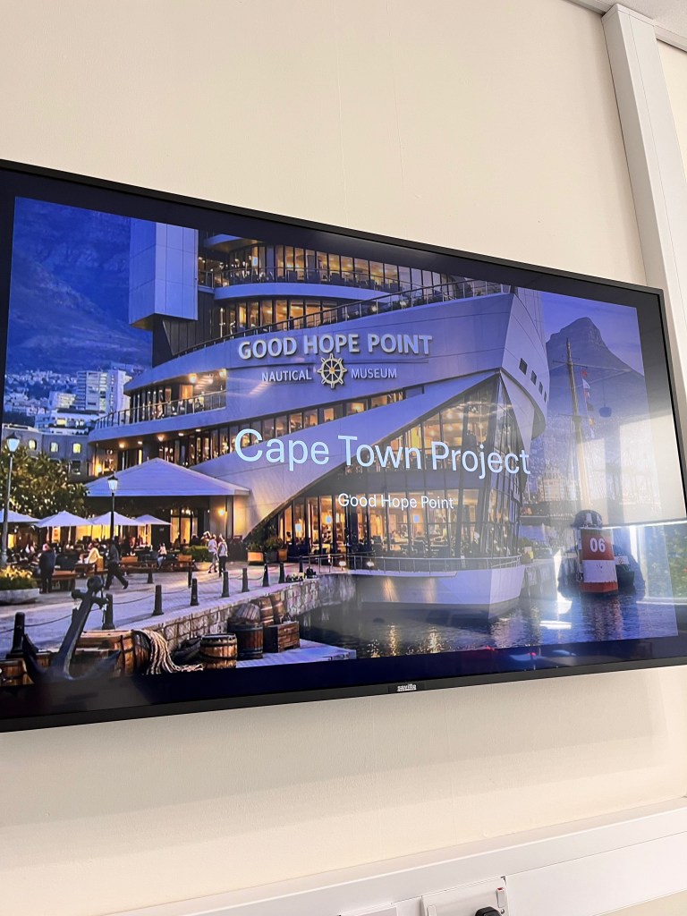 The outputs reflected both creativity and systems thinking. One group designed a sustainable dome-shaped music venue in Liverpool, integrating an open amphitheatre with underground spaces. Another developed a boat-shaped harbour museum in Cape Town, combining tourism, cultural engagement, and flexible use of space. These concepts were then pitched as part of a simulated “boardroom” presentation.